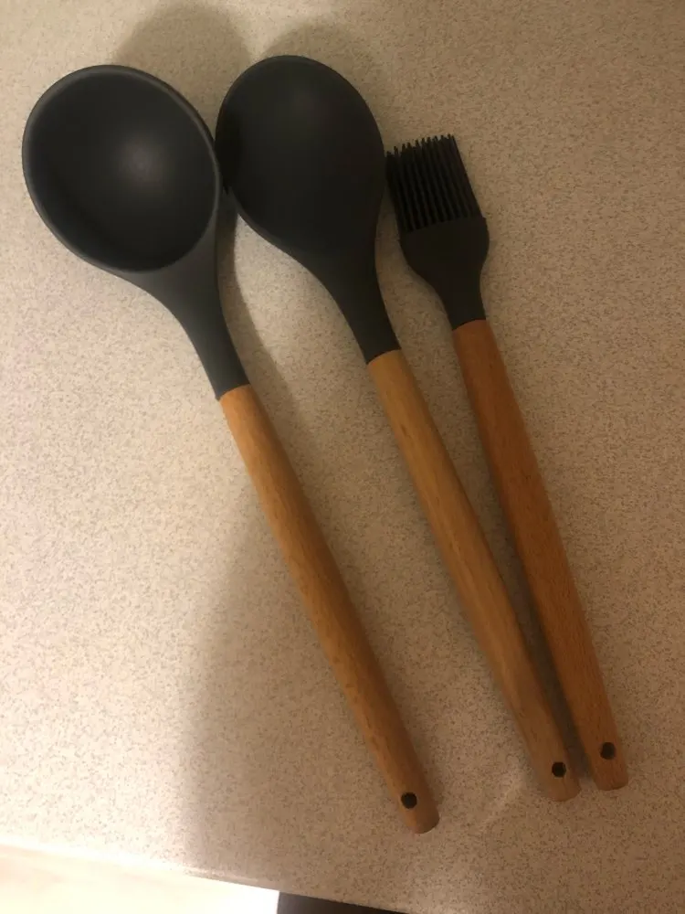 10Pcs/Set Wood Handle Food Grade Silicone Kitchenware